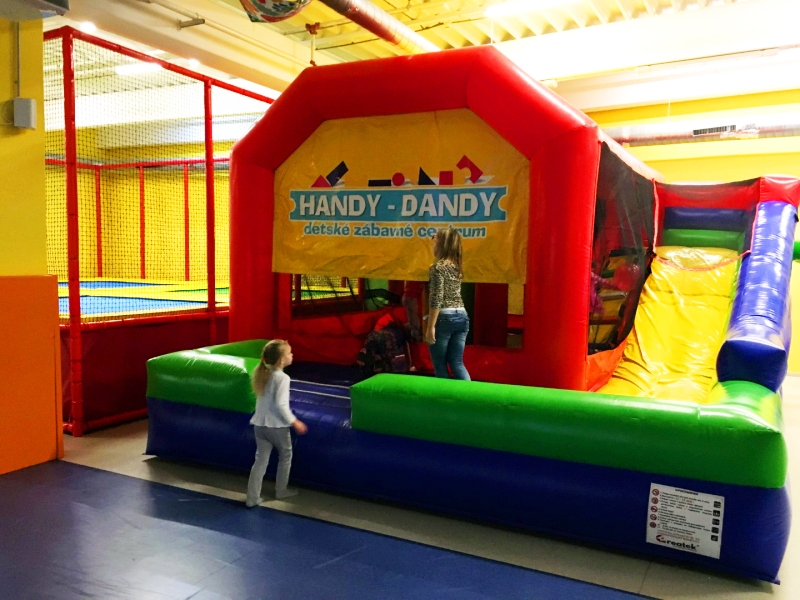Nielen hračky, ale aj trampolíny, Xbox zóna, dotyková hracia plocha, lezecká stena, ihrisko pre najmenšie deti, skákací hrad, penové delá, 2x virtuálna realita, profesionálna hráčska zostava VR Racing, interaktívna tabuľa na ktorej si môžete kresliť alebo sa hrať zábavné hry a mnohé iné zaujímavosti z detského sveta nájdete v detskom kútiku Handy Dandy. Tiež u nás uvidíte absolútne novinky ako simulátor bowlingu - Bowling Champ, jazdenie na motorke Moto GP a Pirátsku loď s vodnými delami.